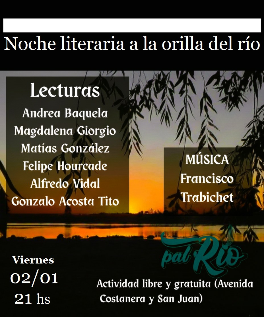 El viernes 2 de enero, a las 21 hs, tendrá lugar una Noche Literaria en Pal Río (San Juan y Av Costanera de los Pueblos Originarios).